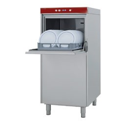 - Spülung mit warmem Wasser (2,5 Lt. Wasserverbrauch pro Waschgang), Boiler (Druck) aus Edelstahl (7 Lt., 6/8 kW)