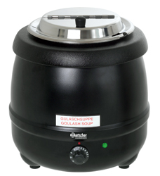 - Außentopf schwarz, Stahlblech lackiert - herausnehmbarer Einsatz aus Edelstahl - Energieregler: 48 - ca. 94 °C - mit dreh- und klappbarem Edelstahldeckel - Löffelaussparung, hitzeisolierter Griff - Inhalt: ca. 9,0 Liter - Abmessungen: H 360 mm, Ø 330 mm - Anschlusswert: 0,4 kW / 230 V - inkl. 8 magnetisch haftender - Suppenbeschriftungen - Gewicht: 4,1 kg