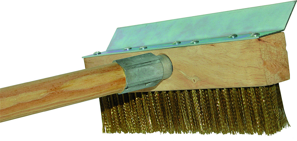 Messingbürste 25 cm, mit Stahlschaber - mit Holzgriff- Länge: 95 cm