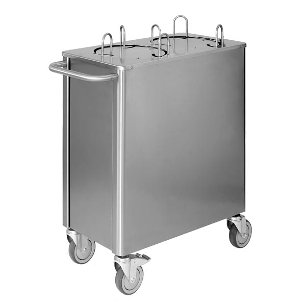 - Edelstahlkorpus AISI 304 - Tellergröße: ø 13-25 cm - 4 Räder mit Stoßschutz, 2 mit Bremse - Abmessung in mm (B/T/H): 355x725x982 - Gewicht: 48 kg