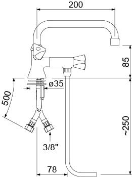 540270 VE.120.060.0N5.V1 (25) G Thekenarmatur Einloch-Mischbatterie für Hochdruck