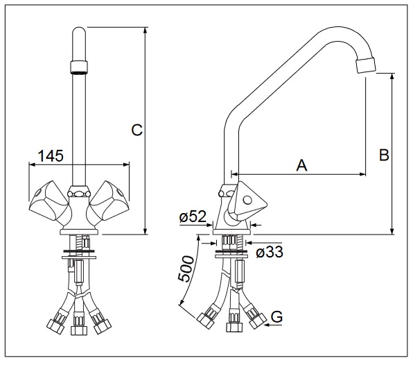 NIEDERDRUCK Spültischbatterie - Niederdruck drucklos, A 230 - H 125 - Massiv gegossener Schwenkauslauf - Wassersparkartusche Ø 40 mm Typ "G" - Wassermengen- und Wassertemperaturbegrenzung möglich - kurzer Hebel, - verchromt