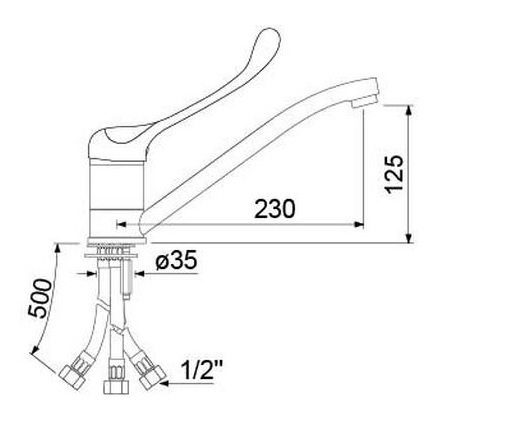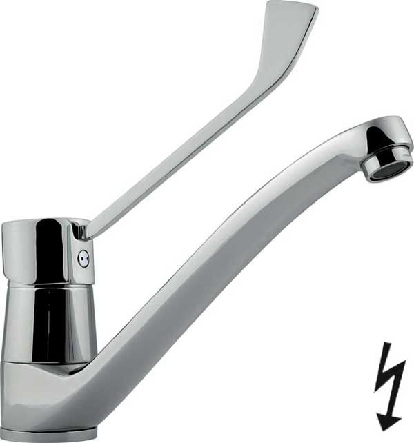 NIEDERDRUCK Spültischbatterie - Niederdruck drucklos, A 230 - H 125 - langer Bedienhebel - Massiv gegossener Schwenkauslauf - Wassersparkartusche Ø 40 mm Typ "G" - Wassermengen- und Wassertemperaturbegrenzung möglich - langen Hebel, - verchromt