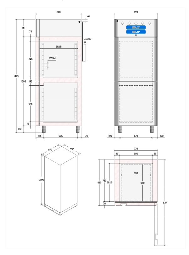 - Homogene Verteilung der gekühlten Luft "seitliche Luftzufuhr ", gleichmäßige Temperatur, garantiert die ordnungsgemäßeLagerung von Produkten (kein Austrocknen der Lebensmittel).
