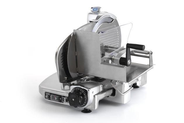 Alle Teile die mit dem Schneidgut in Berührung kommen sind aus rostfreiem Edelstahl oder Plexiglas gefertigt. Das Gehäuse besteht aus eloxiertem Aluminium und rostfreiem Edelstahl. Die Messerschutzplatte, das Gleitblech, die Restehalterplatte, der Fettabstreifer, der Schleifautomat sowie der Schlitten lassen sich zur leichten Reinigung abnehmen