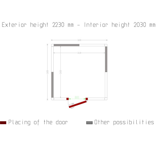 - Nutzbare Durchgangstür 800 xh 1900 mm (beliebige Positionierung der Tür, auf allen 4 Seiten).