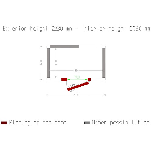 - Nutzbare Durchgangstür 700 xh 1900 mm (beliebige Positionierung der Tür, auf allen 4 Seiten).