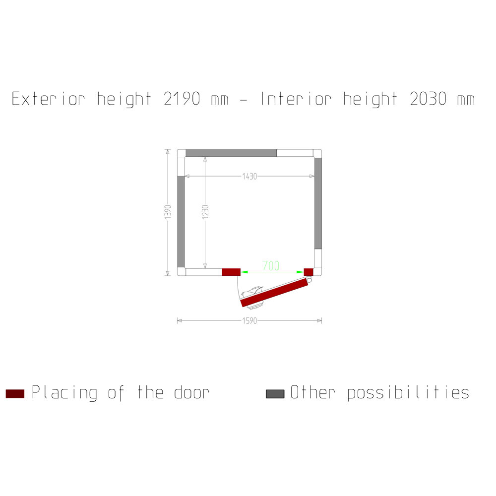 - Nutzbare Durchgangstür 700 xh 1900 mm (beliebige Positionierung der Tür, auf allen 4 Seiten).