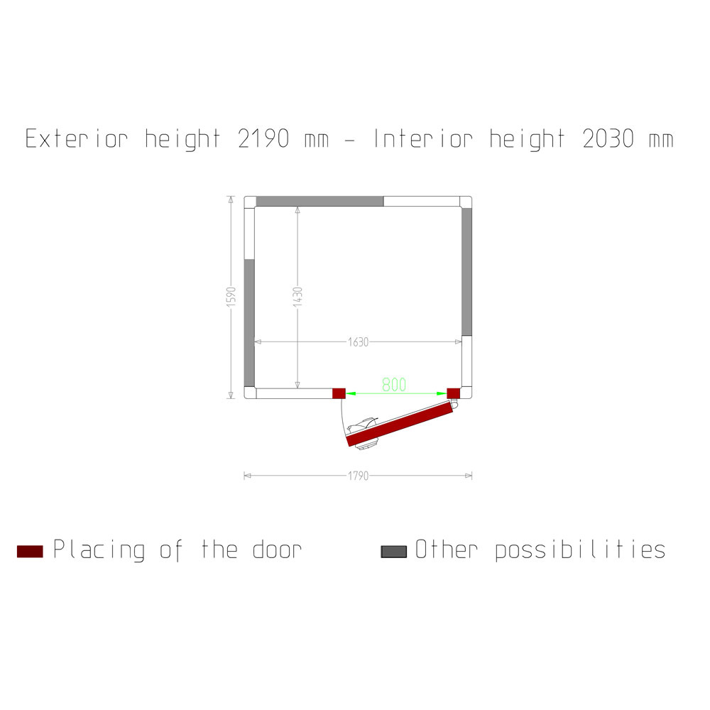 - Nutzbare Durchgangstür 800 xh 1900 mm (beliebige Positionierung der Tür, auf allen 4 Seiten).