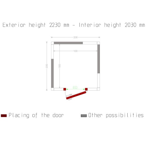 - Nutzbare Durchgangstür 800 xh 1900 mm (beliebige Positionierung der Tür, auf allen 4 Seiten).