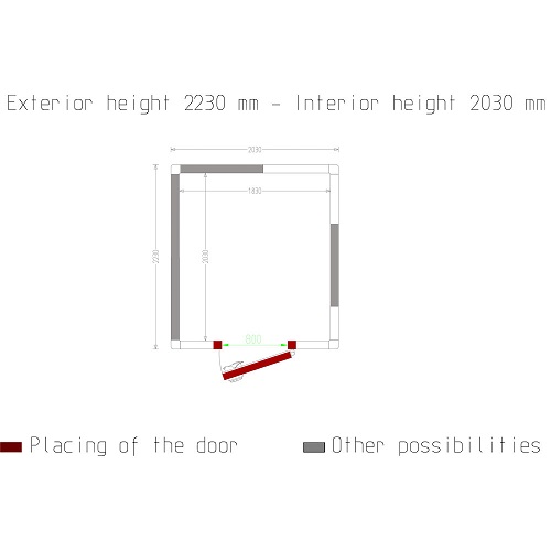 - Nutzbare Durchgangstür 800 xh 1900 mm (beliebige Positionierung der Tür, auf allen 4 Seiten).