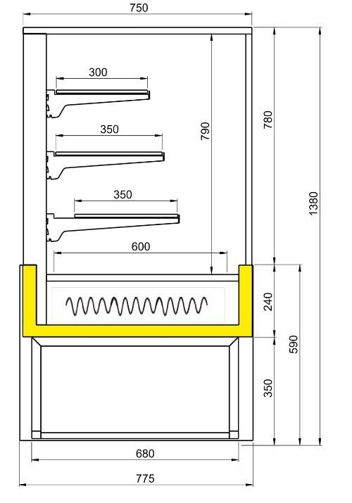 Preview: CB15V-B9/P2 (25) Capri Panorama-Verkaufstheke, Umluft, 4 Stufen, ohne Reservefach - SCHWARZ