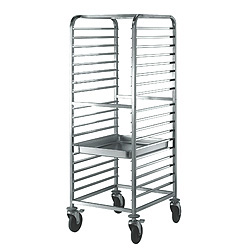 Transport-Tablettwagen für Bleche 20x GN2/1 - Hergestellt aus Edelstahl. - Auflageschienen, geschweißt, "C" Form, Antikippsystem mit Stopper. - Zwischenraum 75 mm. - Rohrrahmen 25x25 mm, demontierbar. - 4 Lenkräder mit Anschlag Ø 125 mm, 2 mit Bremsen.