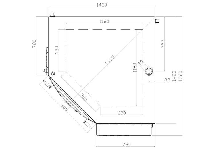 - 2 Kammern 1180x1180xh160 mm (11,7 kW)
