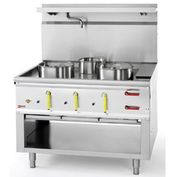 Gas Wok Herd 3 Brenner mit Überflutungssystem