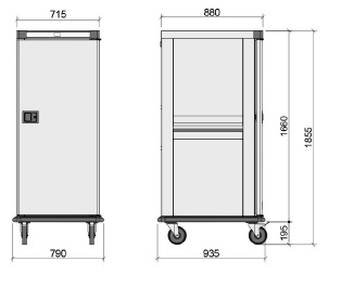 Wärmewagen für Mahlzeiten, 20 GN 2/1, kontrollierte Befeuchtung