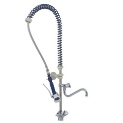 Geschirrbrause und Schwenkhahn mit Einlochmischbatterie - Schwenkhahn, Durchfluss: 18 Liter/Minute. - Einloch 3/4" (Ø 29 mm). - Wandbefestigung 115 mm. Schlauchlänge 1050 mm. - Brausendurchfluss 16 Liter/Minute mm (BxTxH) : 350xh1100 kg : 6 M³ : 0,03
