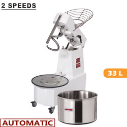Mit den automatischen Knetern können Sie nicht nur die Geschwindigkeit auswählen, sondern auch die Knetzeit für jede Geschwindigkeit programmieren, ohne dass Sie dazu eingreifen müssen. ...... Sie passen sich jeder Mischung an. Sehr intuitive digitale Steuerung, einfach zu bedienen. Kippkopf und herausnehmbare Schüssel erleichtern das Herausnehmen des Teigs. Geliefert auf zwei Rädern, ausgestattet mit Bremsen.