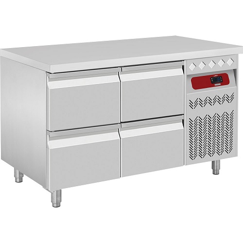 - Verdampfer (übergroß) belüftet (oder) statisch (87% relative Luftfeuchtigkeit), positioniert zwischen den Türen.