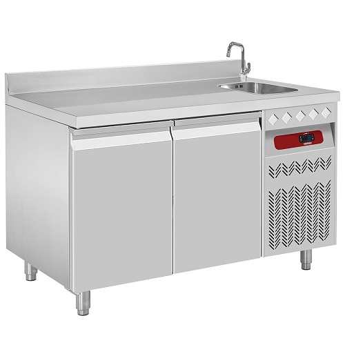 Umluft- Kühltisch, 2 Türen GN 1/1, 260 Lit. mit Spülbecken