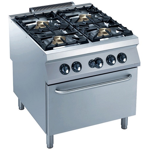 - Gasbackofen, Aufheizung durch Gasbrenner aus Edelstahl mit stabilisierter Flamme