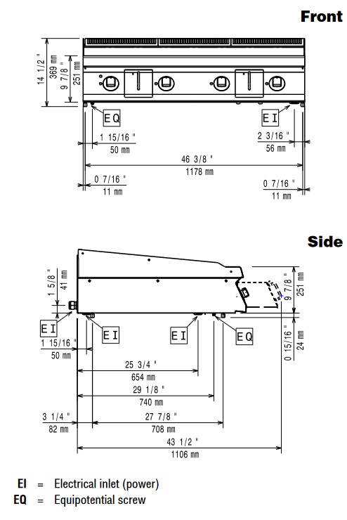 - Nutzbare Abmessungen der Kochfläche 1194x610 mm, 72,83 dm2.
