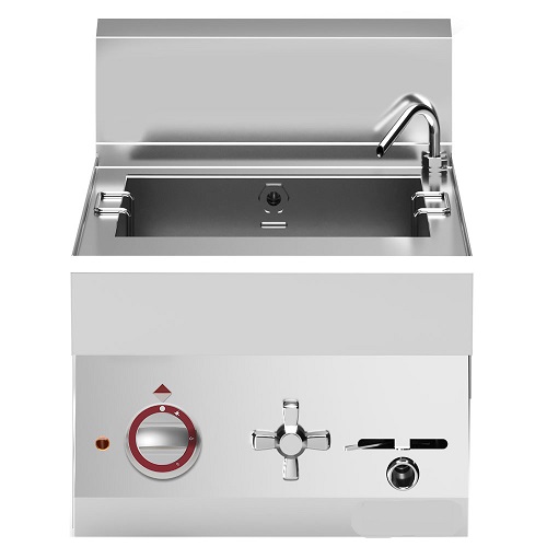 - Elektrische Aufheizung durch gepanzerte Widerstandselemente aus Edelstahl im Inneren des Beckens, Regulierung durch einen 4-Stufen Schalter.