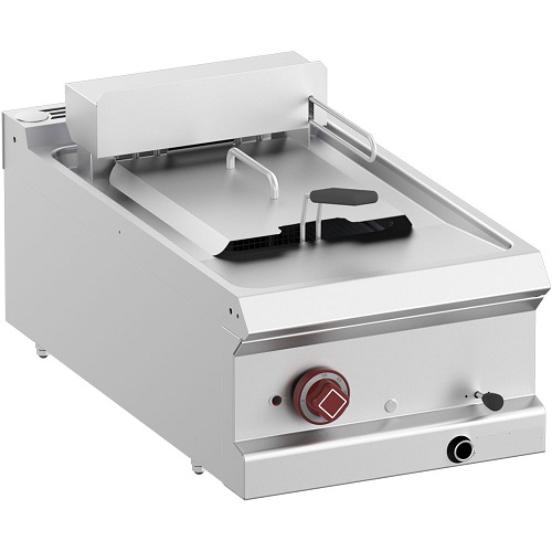 - Elektrische Aufheizung durch gepanzerte Widerstandselemente aus Edelstahl im Becken. Herausnehmbare Widerstandseinheit ermöglicht eine einfache Reinigung des Beckens, Thermostatregler von 100°C bis 190°C.