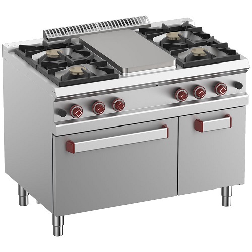 Gasherd 4 Brenner, Kochplatte, Gasbackofen GN 2/1, Unterbau GN 1/1