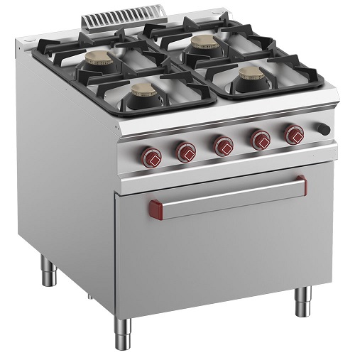 Gasherd 4 Brenner auf Gasbackofen GN 2/1