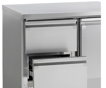 Kit Schubladenblock (1/2 + 1/2) für GN 1/1-200 mm - Kapazität GN 1/1, Behältertiefe 200 mm. - Auf Teleskopschienen.