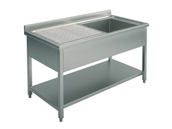 GLA0011 (24) M Spültisch mit 1 Becken rechts, Abtropffläche links, Grundboden, 120x70