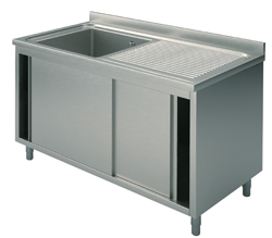GLA0028 (24) M Spülschrank mit 1 Becken links, Abtropffläche rechts, Schiebetüren, 120x70