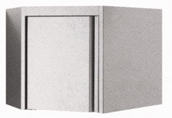 Eckwandhängeschrank mit Flügeltür- mit 1 Flügeltür- Ausführung in Edelstahl - höhenverstellbarer Einlegeboden- schallgedämmte Schiebetüren- Abmessung in mm (B/T/H): 700x700x660