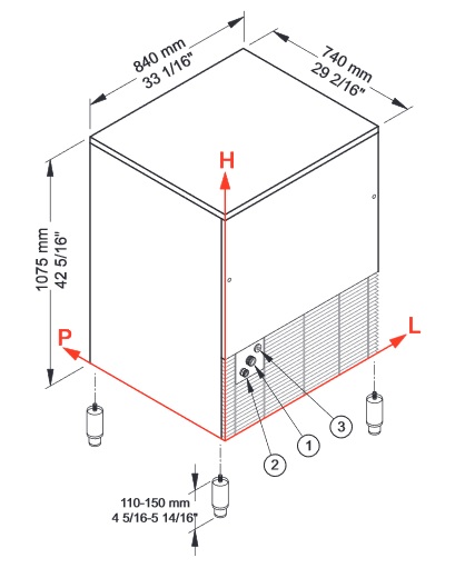 - Gehäuse aus Edelstahl AISI 304, verstellbare Füße.