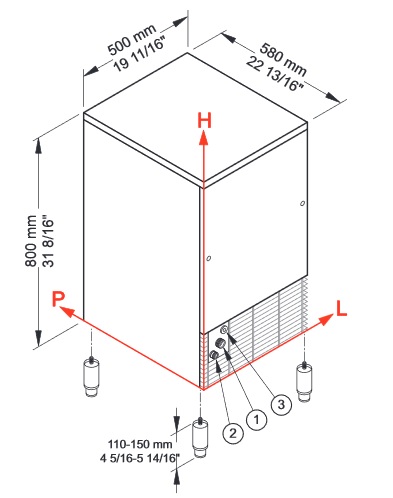 - Gehäuse aus Edelstahl AISI 304, verstellbare Füße.