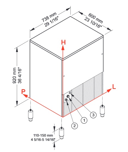 - Gehäuse aus Edelstahl AISI 304, verstellbare Füße.