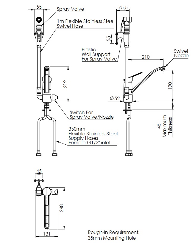- Geschirrwaschbrause mit Einlochbatterie und Schwenkhahn PAK-frei