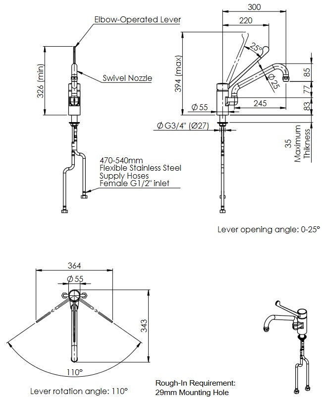 PREMIUM 20911004 1E.2904.87.72 780735 (25) Mischbatterie, großer Wasserdurchfluss - 1/2"
