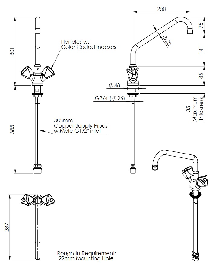- Schwenkhahn Ausladung 250 mm