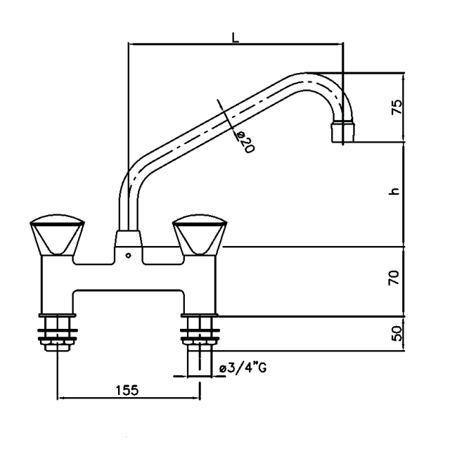 20912001 1S.3007.07.K23 (21) *B Mischbatterie Ø 3/4" mit Schwenkhahn für Zweiloch-Montage