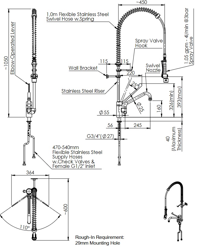- Geschirrwaschbrause mit Mischbatterie und Schwenkhahn PAK-Frei