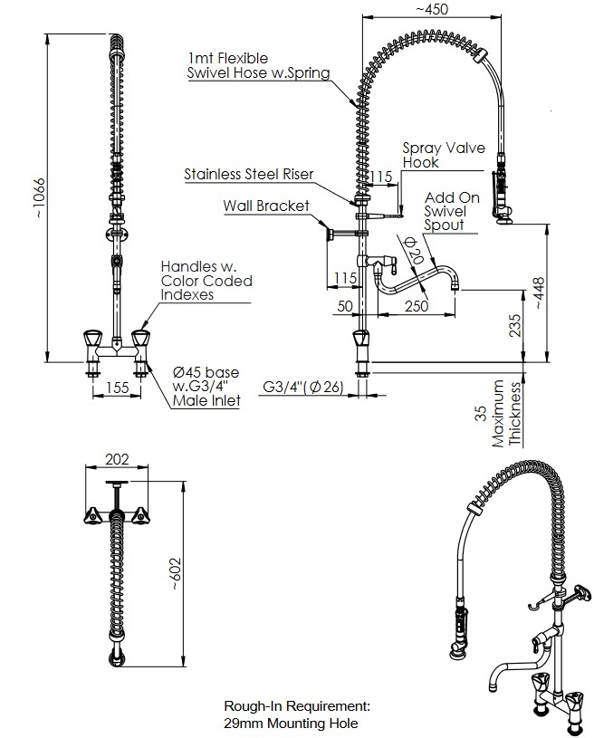 Geschirrwaschbrause mit Zweiloch-Mischbatterie und Schwenkhahn
