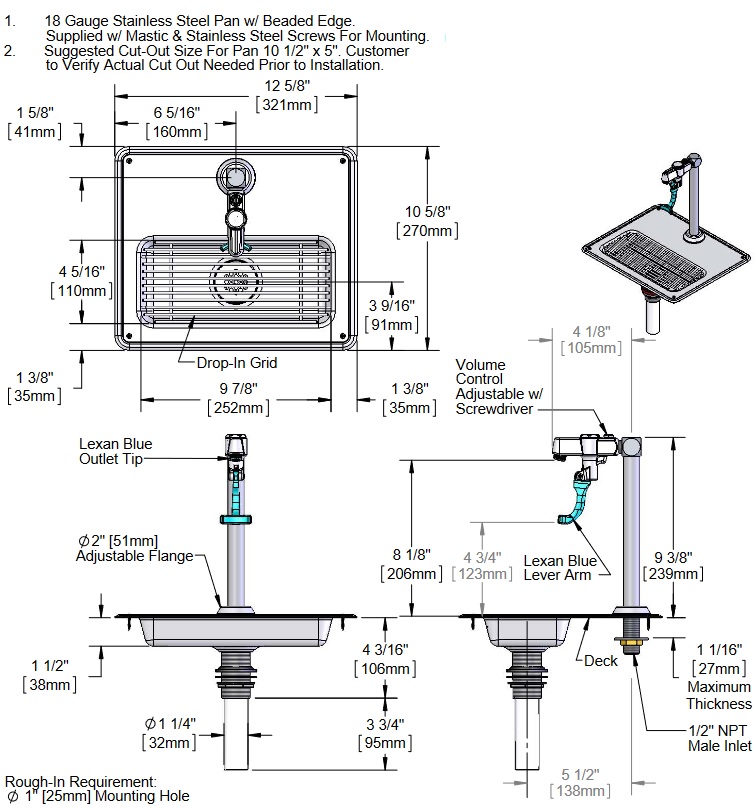 - Wasseranschluß erfolgt an 1/2 Zoll Ventilen
