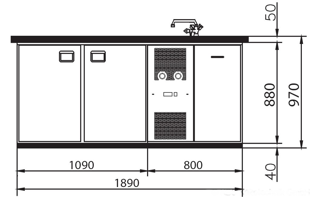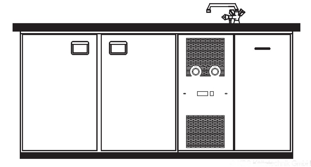 Getränketheke ist mit Türen oder gegen Mehrpreis auch mit Schubladen lieferbar.