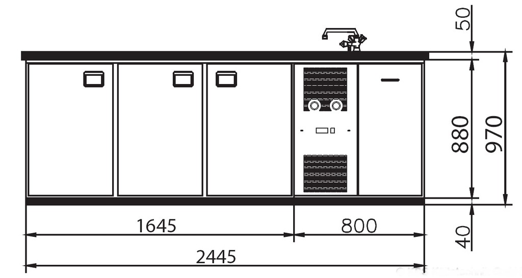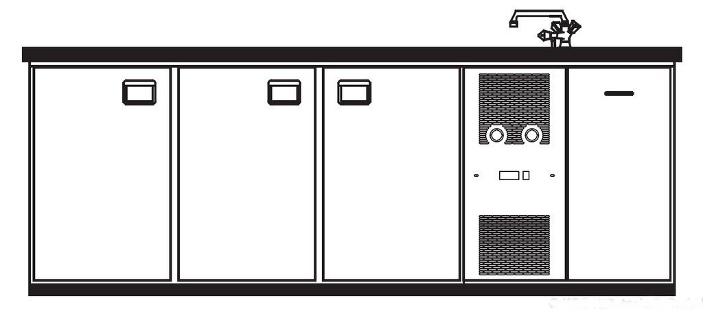 Getränketheke ist mit Türen oder gegen Mehrpreis auch mit Schubladen lieferbar.