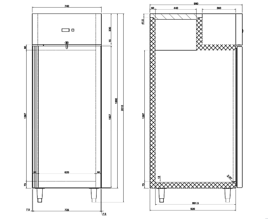 - Euronormkühlschrank mit verdampferfreien Innenraum