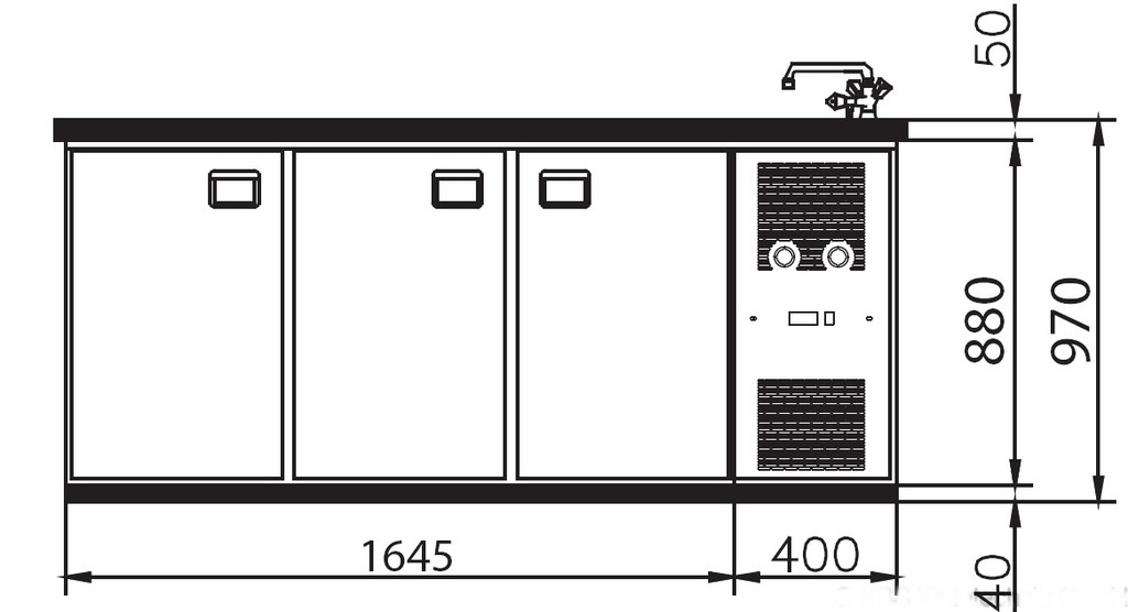 Getränketheke ist mit Türen oder gegen Mehrpreis auch mit Schubladen lieferbar.