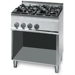 Herd, Gas, 4 Brenner, 19,5 kW mit offenem Unterbau - mit tiefgezogener Kochmulde - Edelstahlkorpus - Leistungsstarke Brenner: 1x 3,3kW + 2x 4,5kW + 1x 7,2kW - Zündbrenner - Sicherheitsthermostate mit Thermoelementen - Abmessung in mm (B/T/H): 700X700X850 - KW: 19,5 werkseitig auf Erdgas H eingestellt