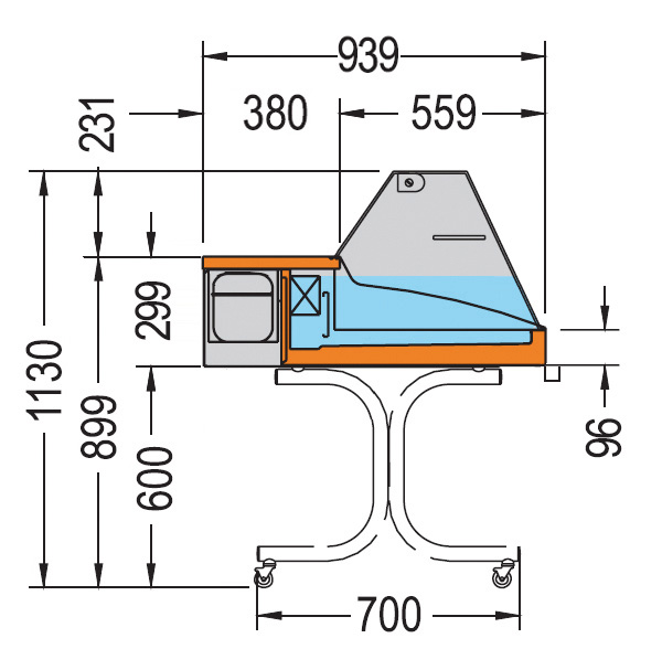 - Hermetische Einheit eingebaut unter der Servierablageplatte